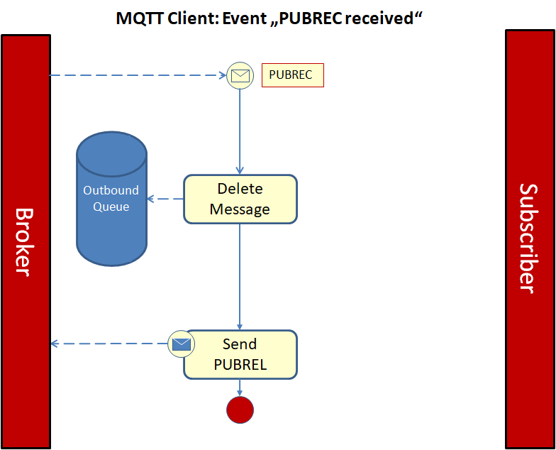 Erhält der Sender die passende PUBREC-Nachricht, löscht er die Nachricht aus der Outbound-Queue. Das wiederholte Senden der PUBLISH-Nachricht wird damit beendet. Über eine PUBREL-Nachricht (Publish Release) teilt er dem Empfänger mit, dass die Nachricht aus der Inbound-Queue gelöscht werden kann.