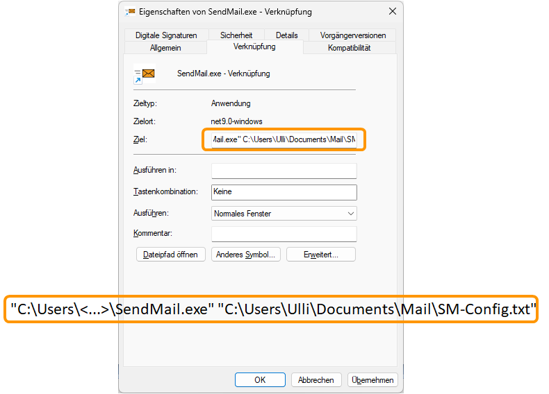 Der Kommandozeilenparameter wird als erstes ausgewertet. Wurde keiner angegeben, wird versucht die Datei SendMailConfig.txt aus dem Arbeitsverzeichnis zu laden.