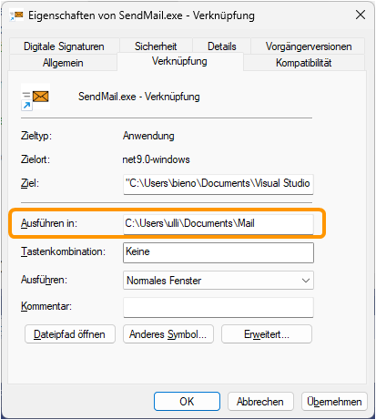 | 2 | Pfad und Name der Datei in die die Fehlermeldungen ausgegeben werden sollen | C:\Users\ulli\Documents\Mail\Fehler.txt |