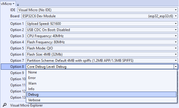 Core Debug Level. In der Visual Micro Extension für das Visual Studio ist dies eine