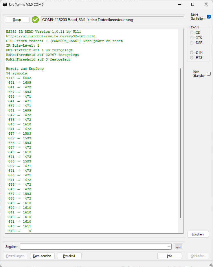 Noch feiner lassen sich die Dinge mit Hilfe der Remote Control Transceiver-Bibliothek regeln. Diese Bibliothek ist vom ESP32-Typ anhängig. Der API-Umfang ist riesig und Bedarf eines ausführlichen Studiums.