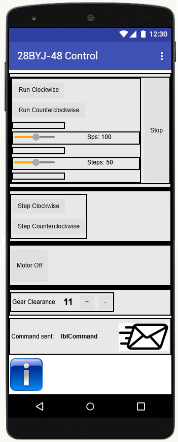 Ein mit App Inventor erstelltes Projekt für Android sendet per UDP Kommandos via WLAN an einen ESP32. Der ESP32 analysiert die UDP-Pakete und steuert das Treiber-Board des Schrittmotors an.