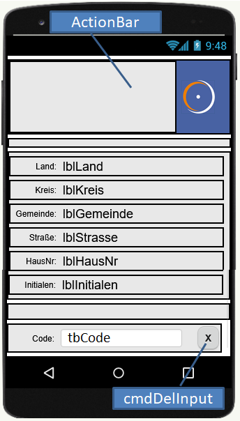 Der Kopf des Dialogbildschirms wird von einer Aktionsleiste gebildet. Deren Implementierung und Funktion ist im Kapitel ActionBar beschrieben.