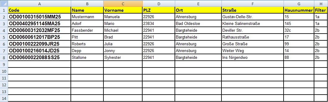 Die Liste der Adressdaten wird befüllt.